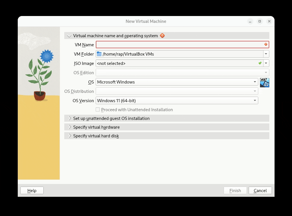 - Create a virtual machine where Debian will be installed that meets the following specifications: